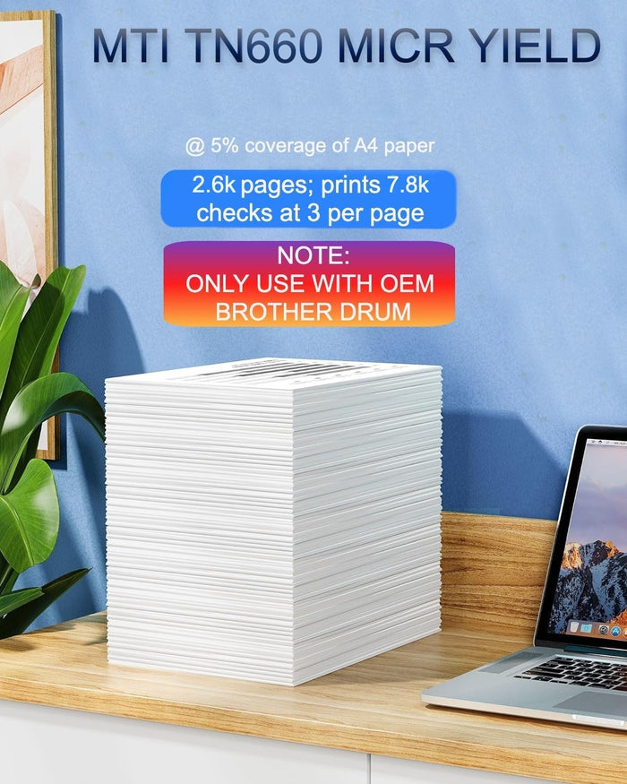 To boost business savings, use MTI Compatible Brother TN-660 MICR Toner Cartridges for printing small business and personal checks